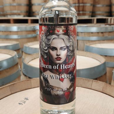 Taking our double distilled “heart cut” Oat Whiskey we then redistill for a second heart cut. This triple distilled Oat Whiskey is truly the Heart of Hearts. Queen of hearts is a true
